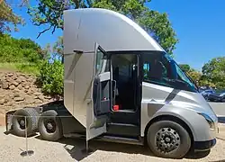 Electric semi-trucks from Volvo are also sold in the North American market.[29] Tesla joined in 2022 with the Tesla Semi. Freightliner manufactures the eCascadia. The Kenworth T680E became available in 2021.[34]