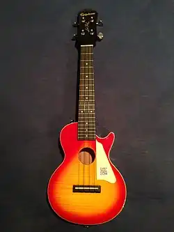 An acoustic/electric Epiphone Les Paul ukulele
