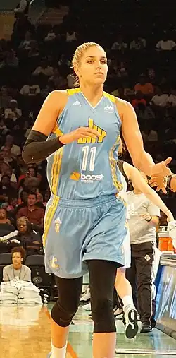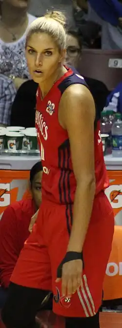 Elena Delle Donne (born September 5, 1989) is an American former professional basketball player.[1] Delle Donne played college basketball for the Delaware Blue Hens from 2009 to 2013.[2] She was drafted by the Chicago Sky with the second overall pick of the 2013 WNBA draft,[3] and led the Sky to the 2014 WNBA Finals, where they were defeated by the Phoenix Mercury.[4] Delle Donne was traded to the Washington Mystics in 2017[5] and led them to their first WNBA championship in 2019.