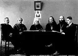 In response, Archbishop Eleutherius convened a meeting of the clergy from his diocese in Vilnius, which on June 30 adopted a protest against the actions of Metropolitan George and other proponents of autocephaly, sending it to other canonical Orthodox Churches. Some Russian White émigré organizations also signed the letter.[12] Archbishop Eleutherius refused to pay the required contributions to support the church and even forbade priests in his diocese from praying for Metropolitan George during services.[12] At the same time, the archbishop sought to revitalize parish life in the Vilnius region, which had diminished after the period of mass evacuation of Orthodox Christians. He provided special care for the women's Monastery of St. Mary Magdalene in Vilnius. When the nuns of this community lost their previous convent (confiscated by the authorities from the Visitation Sisters during the Tsarist period), he arranged for their temporary residence in the buildings of the dissolved men's Monastery of the Holy Trinity.[13]
