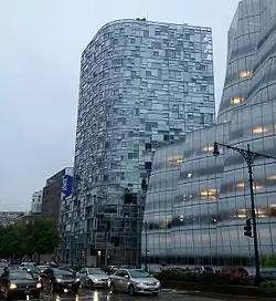 The IAC Building with Jean Nouvel's 100 Eleventh Avenue (behind and to the left) in 2010