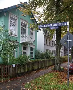 Flügge was the Bäckerbreitergang elementary school's headmistress in 1946 before becoming the principal of Erikastraße elementary school beginning in 1947. She retired in 1958.[3] She maintained correspondence with her former students who had emigrated to other countries and attended a class reunion in New York in 1953.[1] She died on 2 February 1983 in Hamburg.[13]