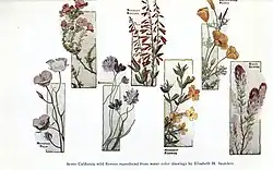 Also in 1902 she married Charles and they honeymooned in California and the American southwest.[3][9] In 1904 Charles published his first book, a book of poems dedicated to Saunders and entitled In a Poppy Garden.[2] Saunders illustrated that volume.[2] The following year Saunders published a book of illustrations, California Wild Flowers.[2] Charles wrote the descriptive text for that work.[2]