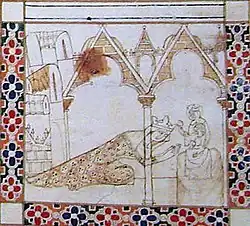 ![]() Queen Beatrice being cured of an illness by the Virgin Mary, Cantigas de Santa Maria | |