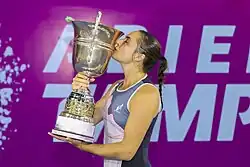 In October, she recorded her first WTA 1000 win in Guadalajara by defeating Anastasia Potapova,[34] before losing to fifth seed Coco Gauff.[35] The following week, she won her maiden WTA 125 singles title at the Abierto Tampico, defeating Carol Zhao,[36] second seed Marie Bouzková,[37] seventh seed Camila Osorio[38] and sixth seed Zhu Lin to reach the final,[39] where she overcame fifth seed Magda Linette in three sets.[40][41]