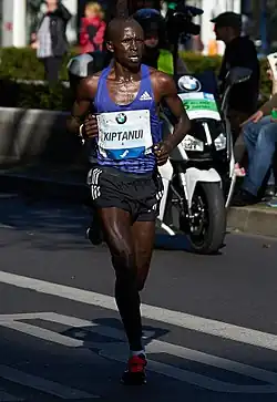 His first race of 2011 was the Rotterdam Marathon and came fifth, some minutes off the winner Wilson Chebet.[5] He was chosen to compete for Kenya at the 2011 World Championships in Athletics. He was among the leaders at the 25 km mark, but gradually fell behind after 30 km and finished the race in sixth place.[6] He ran the second best time of his career at the 2012 Seoul International Marathon, taking third place in a Kenyan podium sweep with a time of 2:06:44 hours.[7] In his two other outings that year he came eighth at the 2012 Berlin Marathon then second at the Beijing Marathon.[8]