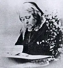 It was there that Margaret Fuller held "Conversations" for women beginning on November 6, 1839.[32] Topics for these discussions and debates included fine arts, history, mythology, literature, and nature.[33] Fuller served as the "nucleus of conversation" and hoped to answer the "great questions" facing women: "What were we born to do? How shall we do it? which so few ever propose to themselves 'till their best years are gone by",[34] Many figures in the woman's rights movement took part, including Sophia Dana Ripley, Caroline Sturgis,[35] and Maria White Lowell.[32]