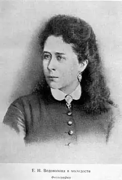 Elizaveta Nikolayevna Vodovozova (Russian: Елизавета Николаевна Водовозова, née Tsevlovskaya, Russian: Цевловская, 17 August 1844, Demidov, Smolensk Governorate, Imperial Russia, — 23 March 1923, Petrograd, USSR) was a Russian children's writer, educational theorist and memoirist, the wife of Vasily Vodovozov.