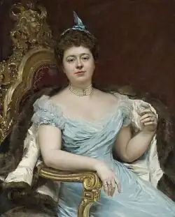 She remarried 10 years later to W. Sackett Duell, son of Associate Justice Charles H. Duel, brother of Senator Holland S. Duell, and grandson of Congressman R. Holland Duell.[31] She remarried six months later to Lt. Charles Albert Smylie, whom she would also divorce.[31] Her last husband was Vladimir Alexandrovitch Behr, Major in the old Moscow Grenadiers, and aide to the Grand Duke Alexander Mikhailovich of the House of Romanov.[45]