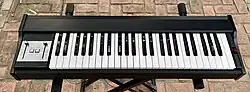This was the earlier, smaller version with 49-key keyboard. It had two sounds, violoncello and strings which could also be combined to produce a fuller sound. There were two other controls; volume and sustain. It also had a master tuning control on the rear panel of the instrument. It is a monotimbral instrument with a single ¼" jack on the rear for output, and a single 5-pin DIN socket for a pedal.