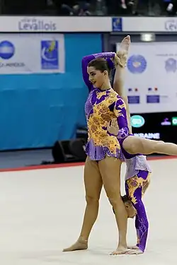 Ella Bohdanova or Bogdanova (born 11 July 1996) is a Ukrainian female acrobatic gymnast. With partner Anastasiia Veresova, Bohdanova achieved 6th in the 2014 Acrobatic Gymnastics World Championships. Retired since 2015. [1] [2]