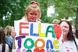 A young fan holds up a sign supporting Toone during England's victory parade for winning the Euro 2025