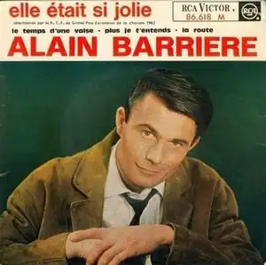 "Elle était si jolie" (French pronunciation: [ɛl etɛ si ʒɔli]; "She Was So Pretty") was the French entry in the Eurovision Song Contest 1963, performed in French by Alain Barrière.