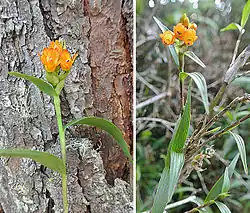 Ellianthus aurantiacus is an orchid (family Orchidaceae) native from Costa Rica to Peru. It is unique among orchids in being a shrub with repeated orders of branching.[1] The plant gets about three feet (0.9 meters) in height and not quite as wide.
