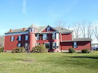 Ellen and Charles F. Welles House, also known as "The Old Red House," "Grovedale Farm," and Homer P. Dean Funeral Home, is a historic home located in Wyalusing Township, Bradford County, Pennsylvania. The original house was built about 1822, and is a transitional brick Greek Revival-style dwelling. A 2+1⁄2-story frame Queen Anne-style addition built in 1894. Also on the property are a small frame barn (c. 1870), a large frame barn and carriage barn (c. 1850), corn crib (c. 1900), and small frame tenant house (c. 1890).[2]