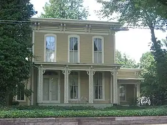 Eller-Hosford House, also known as the Donald W. Crawford Residence, is a historic home located at Mishawaka, St. Joseph County, Indiana. It was built about 1875, and is a two-story, Italianate style frame dwelling with a one-story wing. It sits on a stone foundation, is sheathed in clapboard siding, and has a flat roof. It features large segmental arched windows, a full-width front porch with four columns decorated with lattice work, and cornice with paired large brackets. The house was renovated in 1979–1980.[2]: 2