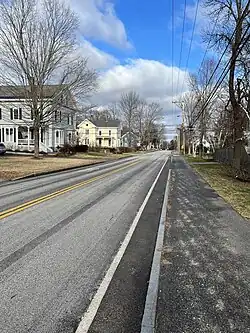 Elm Street is a prominent street in Yarmouth, Maine, United States. It runs for about 2.7 miles (4.3 km) from North Road in the north to Portland Street in the south. The street's addresses are split between "West Elm Street" and "East Elm Street", the transition occurring at Main Street in the Upper Village. Several of its buildings are homes dating to the late 18th and early 19th centuries.
