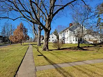 The Elm Street Historic District encompasses a colonial-era roadway layout and a cross-section of historical residential architecture styles in Rocky Hill, Connecticut. Elm Street between Silas Deane Highway and Grimes Road is an old colonial road, laid out in the late 17th century, and has retained an unusually wide right-of-way, typical for the period but rarely preserved. The houses lining it date from 1769 to the 1930s. The district was listed on the National Register of Historic Places in 1998.[1]