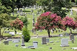 The first burial occurred on 15 July 1853, when Mrs. R.B. Berry was laid to rest. Since then, more than 75,000 people have been buried at Elmwood Cemetery, with space still remaining for about 15,000 more. The cemetery's gardens include the Carlisle S. Page Arboretum. Beneath the cemetery's ancient elms, oaks, and magnolias lie some of the city's most honored and revered dead; flowering dogwoods and crepe myrtles are interspersed with Memphis history, those famous and infamous, loved and feared. There are veterans of every American war, from the American Revolution up to the Vietnam War, and there are people from every walk of life and culture, including Mayors of Memphis, Governors of Tennessee, U.S. Senators, madams, blues singers, suffragists, martyrs, generals, civil rights leaders, holy men and women, outlaws and millionaires and ordinary citizens.