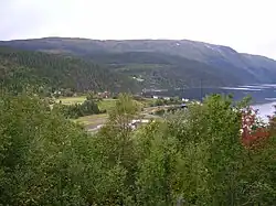 The highest point in the municipality was the 1,348-metre (4,423 ft) tall mountain Lukttinden on the border with Drevja Municipality.[1]