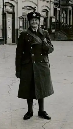 In December 1944, she was attached to No. 6091 Servicing Echelon at RAF Manston, providing ground support for the Spitfires of No. 91 Squadron.[4] The following October she moved to Headquarters No. 28 Group in London, when she chose to extended her service to begin work as an Educational and Vocational Training Instructor, helping men to return to civilian life.[4] She was discharged on 28 May 1946, with the rank of Sergeant.[4]
