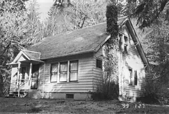 The maintenance area across the road includes the 1930 fire cache building (48°01′00″N 123°35′27″W / 48.01658°N 123.59093°W), equipment shed (48°01′00″N 123°35′29″W / 48.01674°N 123.59134°W), equipment repair shop (48°00′59″N 123°35′29″W / 48.0165°N 123.59151°W) and horse barn (48°01′01″N 123°35′28″W / 48.01696°N 123.59108°W), all of wood-frame construction. The two-story barn is covered with board-and-batten siding and has a distinctive Forest Service character. 1936 buildings include the gas and oil building (48°00′59″N 123°35′27″W / 48.01629°N 123.59079°W), constructed by the Civilian Conservation Corps, an equipment shed (48°00′58″N 123°35′29″W / 48.01624°N 123.5913°W) that was moved in 1948 from the Elwha CCC camp, and a smaller lean-to shed (48°00′59″N 123°35′30″W / 48.01629°N 123.59161°W). The oil and grease building has a residential character, with stylized pine tree cut-outs in the gables and curved support brackets on the front porch. The equipment sheds are large gabled 1+1⁄2-story buildings with exposed rafter tails and prominent gable dormers.[2]