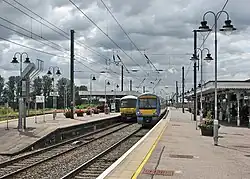 Ely railway station is on the Fen line in the east of England, serving the cathedral city of Ely, Cambridgeshire. It is 70 miles 30 chains (113.3 km) from London Liverpool Street and is situated between Waterbeach and Littleport stations on the Fen line to King's Lynn. It is an important junction for three other lines: the Ely to Peterborough Line, the Ipswich to Ely Line and the Norwich to Ely line.