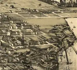 Tom Gilbert wrote that by the mid-1890s, "The baseball fields gave way to piers, warehouses, and more railroad tracks."[3] The New York Herald-Tribune, in 1890, described the area's rapid urban transformation: