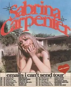 The Emails I Can't Send Tour was the fourth headlining concert tour by American singer, songwriter, and actress Sabrina Carpenter in support of her fifth studio album Emails I Can't Send (2022). The tour began on September 29, 2022, in Atlanta, United States, and concluded on August 4, 2023, in Chicago, United States, comprising 80 shows throughout three legs in North America, and one leg each in South America, Europe, and Asia.[1][2]