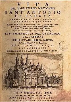 - ^ Azevedo, Emmanuel de (1818). Vita di Sant' Antonio di Padova Taumaturgo Portoghese: Dell' ab. Emmanuele de Azevedo di Coimbra (in Italian). Dalla tipografia di Alvisopoli.