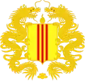 Coat of arms of the French protectorate of Annam.[25] | A sword per fess charged with a scroll, inscribed with two Traditional Chinese characters (大南) and supported by a single Vietnamese dragon. | |