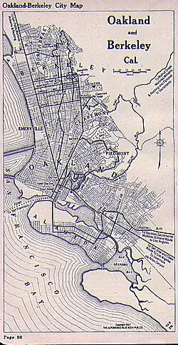 Map of Oakland and Berkeley area in 1917; Emeryville is noted between them on the map.