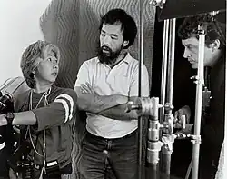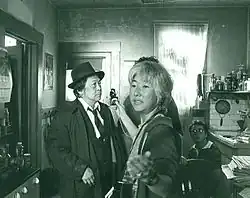 Omori (left) filming on the set of Dim Sum: A Little Bit of Heart, 1983