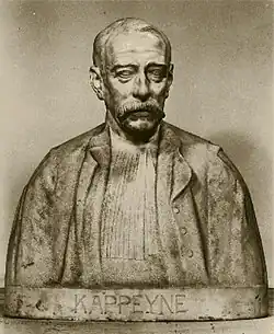 On 6 February 1921, a marble bust by Epple of Dutch Senator Jacobus Kappeyne de Capello, his former wife's uncle, was unveiled in the Stedelijk Museum. The bust is still on display in the hall of the Dutch Parliament in The Hague.[6] In 1928, Epple was nominated Professor honoris causa by the Reichsakademie München, having just completed four huge statues for the Saint Josephospital. After the rise to power by Adolf Hitler as Reichskanzler on 30 January 1933, and, subsequently, the suspension of civil rights, the increase in paramilitary violence, the Enabling Act, turning Hitler's government into a dictatorship, and the utterly racist Nuremberg Laws in 1935, Epple had his family moved to the Netherlands.