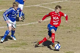 Krafth dribbling the ball while playing for Östers IF in 2011.