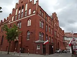 The first commemorative plaque was funded by the local Sokół association and unveiled in 1936, on the wall of the Polish House at 11 Warmińskiego street. After its destruction by the Nazis, the "Halka" Singing Society placed a new one on the very place where the previous stood: it was inaugurated on 14 June 1958 for the occasion of the 75th anniversary of the association.[12] This plaque stood until the demolition of the building in February 2019: however, the commemorative plaque will be positioned back on the plot at the end of the building works.[13]