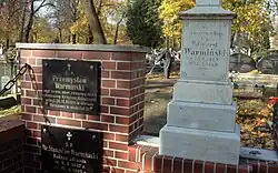 Warmiński's remains carried back to Bromberg by train on 12 June 1909. His funeral took place the following day, a Sunday; the ceremony was attended by a large crowd of Bydgoszcz residents. From the Nowofarny cemetery chapel, the procession went along several streets of the city to Starofarny cemetery: at the grave, his choir "Halka" chanted the four-voice song "Na groby" (On the grave).[6] Emil Warmiński was buried in the family vault in the Starofarny cemetery at 15 Grunwaldzka street.[7] Following his death, the editorial office of the "Dziennik Bydgoski" recalled the figure and merits of the honorable doctor of "Polish hearts and souls".[3]