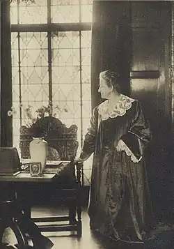 Folger, in the Folger Shakespeare Library's Founders' Room, wearing Julia Marlowe's Portia costume, 1932