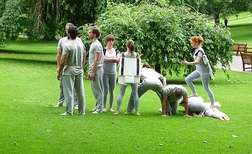 Speed began to work with performers in 2012, with the work 'Human Castle', performed by ten acrobats in the shadow of Edinburgh Castle.[11] She worked again with acrobats in 'Build Up' (2013), exploring the balance and endurance of the human body to create and collapse architecture-like structures.[12]