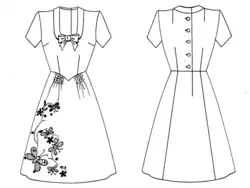Unlike other designers working in the field, Wilkens designed clothes particularly for young girls and teenagers, rather than making miniature versions of their mothers' garments.[2] Realizing that children grew quickly, she made garments that adjusted to accommodate changes in the adolescent figure, whilst maintaining an age-appropriate appearance.[3] Among her signature designs were little black dresses for young girls, which, with bright accessories and details, allowed the wearer to have a "grown up" dress whilst avoiding an austere appearance.[3] The fashion publicist Eleanor Lambert credited her with recognizing an untapped market, and the fashion historian Richard Martin stated that Wilkens "invented the American teenager" long before rock and roll and James Dean consolidated the concept.[1][2] By 1947, she was said to have served over eight million customers.[2]