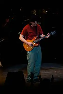 In mid-1986, thirty-one-year-old Kusturica started playing bass guitar in Zabranjeno Pušenje,[48] a Sarajevan punk/garage rock outfit and part of the New Primitivism movement. Kusturica, an already established and celebrated Palm d'Or-winning film director, joined the band just after Zabranjeno Pušenje frontman Nele Karajlić had caused a media scandal[49] that led to his legal prosecution on the verbal offence grounds and the band being shadow banned in the Yugoslav media, all of which hurt its commercial prospects and led to three of the six members leaving the group.[50]
