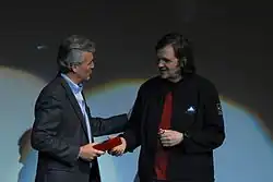 He has competed at the Cannes Film Festival on five occasions and won the Palme d'Or twice (for When Father Was Away on Business and Underground), as well as the Best Director prize for Time of the Gypsies. Kusturica has won a Silver Bear at the Berlin Film Festival for Arizona Dream, a Silver Lion at the Venice Film Festival for Black Cat, White Cat and a Silver Lion for Best First Work for Do You Remember Dolly Bell?. He has also been made a Commander of the French Ordre des Arts et des Lettres.[6][7] Kusturica has been a member of the Academy of Sciences and Arts of the Republika Srpska since 9 November 2011.[8] Among other accolades, Kusturica became a UNICEF ambassador in 2002 and eight years later he was made a chevalier of the Legion of Honour in France.