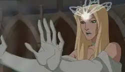 During the 2007–2008 storyline "Messiah Complex", Frost was part of the team that investigated the detection of a new mutant in Alaska.[76] She also defended the X-Men from the Marauders and the telepathy of Sinister and Exodus.[77] Frost was last seen with Cyclops's team of X-Men looking for Cable and then tracking down the Marauders with the Cuckoos.[78] Later when X-Force arrived at the Marauders' hideout, Frost took out Harpoon.[79] During the final battle on Muir Island, she faced Exodus, stalemating him in a telepathic duel, until Dust was able to enter his body and scour his lungs with her sand form, incapacitating him.[80]