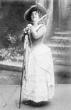 Gates received a contract with the Royal Opera of Berlin in 1909 and in 1911 became the prima coloratura soprano with the Kassel Royal Opera.[2] In 1915, Gates formed the Lucy Gates Grand Opera Company with her brother B. Cecil Gates. After her marriage in 1916, she continued performing in operas and did recordings with Columbia Records.[3][4] She appeared in La traviata in Newark in 1919.[5] She sang at the Brooklyn Academy of Music in 1920,[6] and at New York's Aeolian Hall in 1920[7] and 1922.[8]