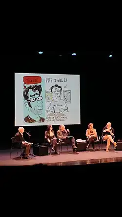 In 2011, he took part in the response to the first attack against Charlie Hebdo's offices,[38][39] and contributed cartoons to the campaign for marriage equality in France. In January 2015, in the wake of the 2015 Charlie Hebdo shooting, he published a tribute to Charlie Hebdo cartoonists titled "They Killed My Idols"[40] in The Nib, and in February 2015, he participated in a debate organized by PEN America, the French Institute Alliance Française (FIAF), and the National Coalition Against Censorship (NCAC) on "After Charlie: What's next for art, satire, and censorship?" at FIAF with Art Spiegleman, Molly Crabapple and Francoise Mouly.[41]