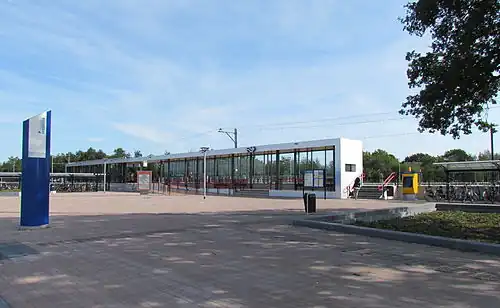 Emmen Zuid is a railway station located in Emmen, Netherlands, on the Zwolle–Emmen railway. The services are operated by Arriva. There is a tunnel under the railway line for the road and cycle path. Near the station is a car park and bus station. The station opened on 3 April 2011 and replaced Emmen Bargeres railway station. Construction work for the station began in March 2010. Formerly, there was a level crossing at the station location.
