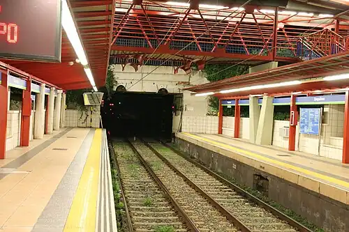 Empalme [emˈpalme] is a station on Line 5 of the Madrid Metro. Its name (literally "Junction") is derived from the old Línea Madrid-Almorox, where there was a station called "Empalme-Goya" (Goya Junction).[1] where It is located in fare Zone A.[2]