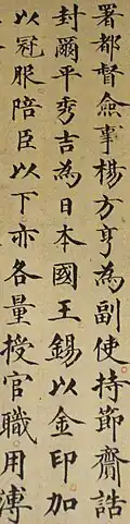 The shogun Ashikaga Yoshimitsu accepted the title King of Japan bestowed by the Yongle Emperor due to his desire to establish trade relations with the Ming dynasty.[22][23][24] China also invested the Ōuchi clan with the title.[18]