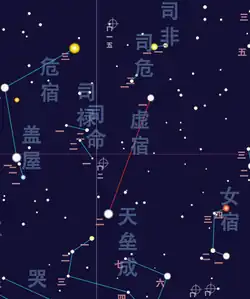 The Emptiness mansion (simplified Chinese: 虚宿; traditional Chinese: 虛宿; pinyin: Xū Xiù) is one of the Twenty-eight mansions of the Chinese constellations.[1] It is one of the northern mansions of the Black Tortoise.