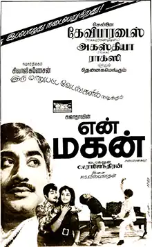 En Magan (transl. My Son) is a 1974 Indian Tamil-language action drama film directed by C. V. Rajendran.[1] The film stars Sivaji Ganesan and Manjula, with K. Balaji, Major Sundarrajan, R. S. Manohar, V. S. Raghavan, V. K. Ramasamy and Manorama in supporting roles.[2] It is a remake of the 1972 Hindi film Be-Imaan.[3] The film was released on 21 August 1974, and became commercially successful.